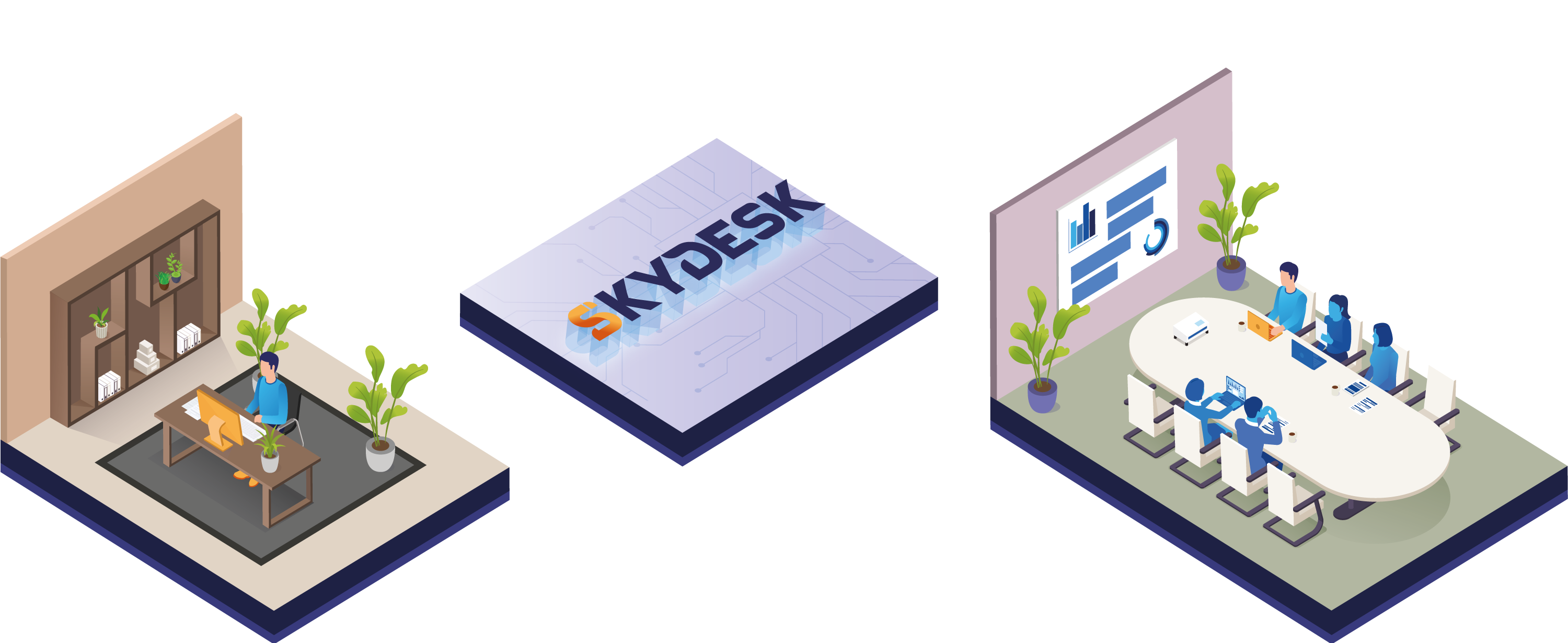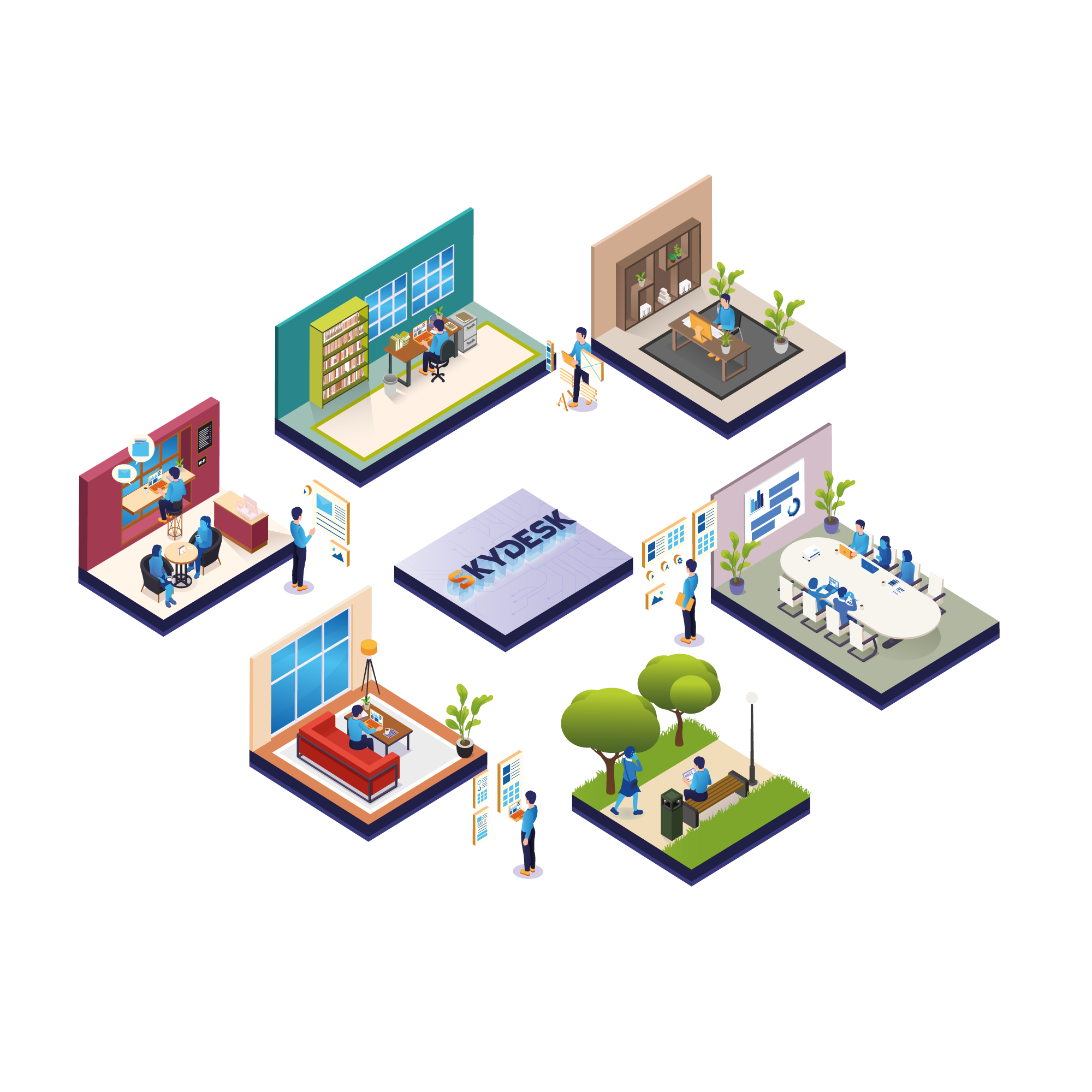Che tu stia utilizzando un dispositivo Apple, Windows o Android, con Skydesk non avrai problemi di gestione né la necessità di impiegare o acquistare risorse hardware aggiuntive. Questo massimizza l’efficienza, il risparmio di spazio e la gestione della produttività in ogni contesto.